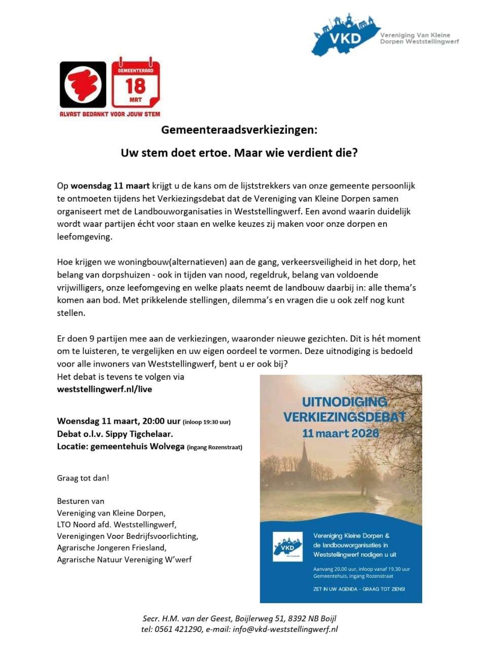 Uitnodiging verkiezingsdebat